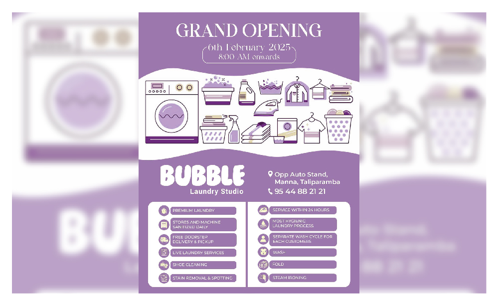 At Bubble Laundry Studio, we take pride in delivering the best laundry and dry cleaning experience in Manna, Taliparamba, Kannur. Here’s what we promise: